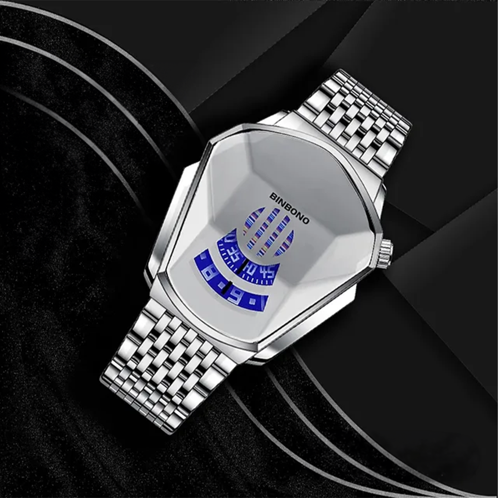 ساعة رجالي فاخرة بسوار معدن فضي، تصميم عصري أنيق، مقاومة للماء، مثالية للعمل والمناسبات الرسمية